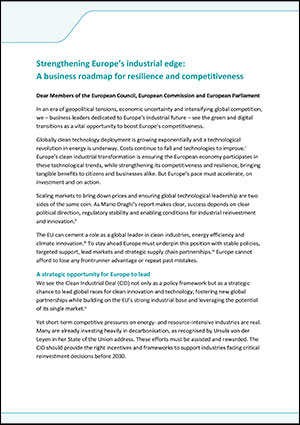 In an open letter coordinated by CLG Europe, businesses, investors and business and investor networks and SMEs from across 18 European countries and beyond are urging EU heads of state and the European Commission to deliver an effective Clean Industrial Deal, and calling to align its climate ambition with industrial renewal, innovation, and strategic investment, as well as answer the calls for competitiveness in the Draghi Report.
